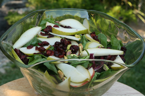 The recipes for the “Ugly Duckling Salad” can be found on Food Network but I made one change since I couldn’t find celeriac.  Instead, I put in thinly sliced pears and added dried cranberries.  My salad was such a beauty that I don’t think anyone would have called it an Ugly Duckling!