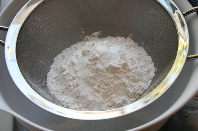 Cover bottoms of 3 (9-inch) round pans with parchment paper; spray sides with cooking spray or butter and flour sides. Please believe me that covering the bottom of your pan with parchment paper is a must. This cake is ultra spongy and soft and would otherwise be difficult to get of out of your pans. With the parchment paper, it’s a cinch!