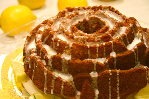 Oh, it looks so bright and summery! I’ve been wondering what to do with all these Meyer lemons from the farm. Now, if only I had a fancy Bundt pan like that… it’s just beautiful!