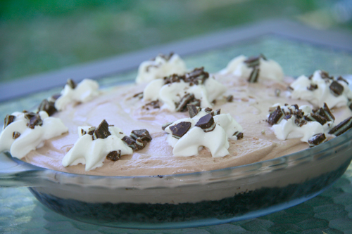 Fast forward to five hours later, when I am serving up the pie to my daughter, and there was no firming up that happened what-so-ever.  It was simply a mousse.  It was a beautiful, delicious chocolate minty airy mousse, but it was a mousse all the same.