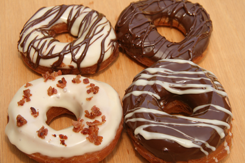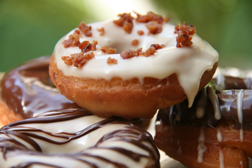 These are almost enough to make me break my donut ban. (I worked at a bakery in high school and let’s just say 15 years later, or so, I still can’t eat most donuts.) I actually think the title and the bacon would make me break my ban. The pictures are just wonderful.