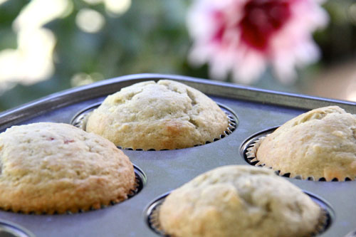 When they are still warm, we bite into these exotic muffins studded with chopped plum and coconut, and everyone says, “Mmmmmm,” including my son. His brows furrow, and he looks confused. “What’s in them?” he asks. I pretend to not hear him, continuing to chew and concerning myself with the goofy Golden Retriever trying to get my attention with her sad puppy-dog eyes pleading for a bite.