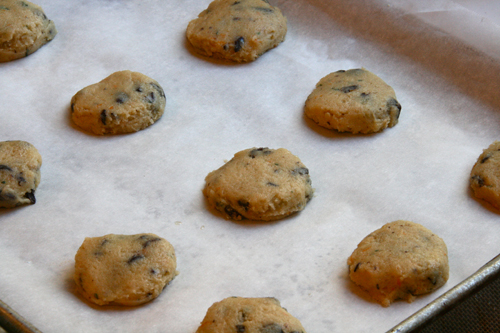 VERY IMPORTANT SIDE NOTE:If you are serving them at a party or giving them as gifts, you may want to make up a nice little tag with your cookies that plainly states, “Orange and Rosemary Infused Chocolate Chip cookies.”  You wouldn’t want anyone to have to guess as to what the little green dots in your cookies are.  Thanks Brenda for that tip! 🙂
