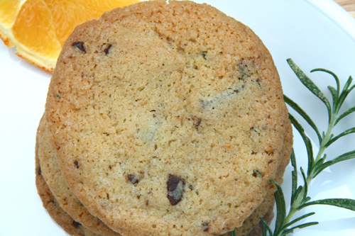 Flat and Chewy, Rosemary and Orange Infused Chocolate Chip Cookies