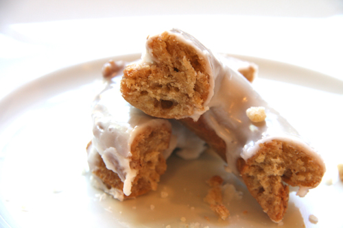 O.K., now that we have finished with the comic relief, back to the yummy doughnuts. They are lightly spicy, without hitting you over the head with ginger, just a touch sweet—not syrupy sweet. Their texture is cake-y and soft with just that perfect crunch on the outside.