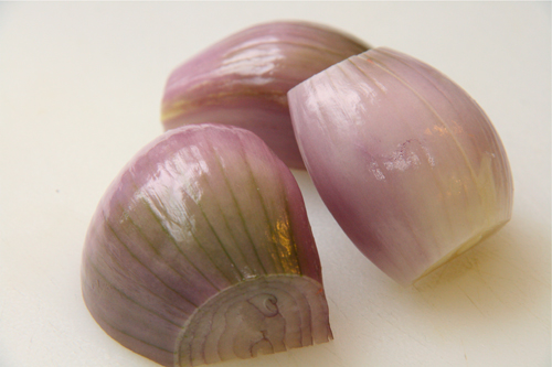 Chop your peeled shallots and garlic in the food processor or chop finely by hand. Remove from the bowl and reserve. Mince your thyme by hand. Set aside both the chopped shallots with garlic and the thyme.