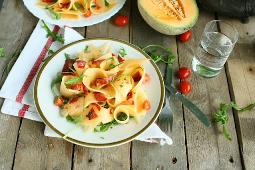 Oh my, Angie’s Cantaloupe Ribbons Salad with Chorizo is breathtaking, and I will be amazed if I can pull this one off. But wouldn’t my guests be impressed?