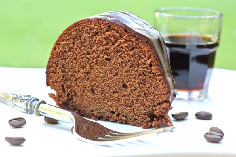 The texture is feathery as its original name implies, and the flavor is rich and so very chocolaty with the extra zing from the liqueur and Espresso, and the word, “mmmmmm” can’t help but escape from your mouth. Perhaps that is the only logical explanation for why this cake was mysteriously missing two slices from the bundt ring that I made him.