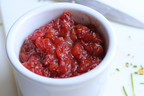 5 pounds tomatoes, finely chopped (I used organic hot house but use what you have in your garden)