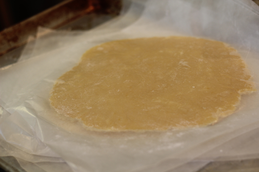 On a floured pastry board, bring the dough together and divide into three parts. Roll each third between two pieces of wax paper and roll out until 1/8 inch thick. Stack the three rolled parts on top of one another on a baking sheet (keeping the wax paper in between each layer of dough). Refrigerate for 1 hour or longer…depending on how long it takes you to make the filling. The filling needs to refrigerate for one hour as well.