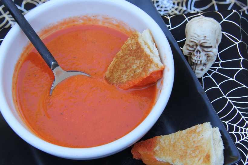 To warm up your goblins before their adventure, you may want to serve some Grilled Cheese Fangs dipped in Blood-Red Heirloom Tomato soup.
