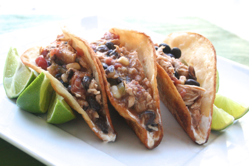 Or how about  Slow Cooker Chicken Tacos with crispy stove top fried taco shells from Sweet Caroline’s Cooking?