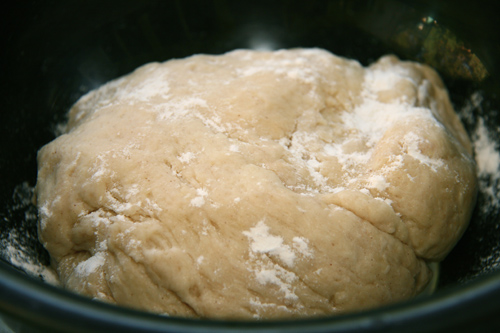 Scrape dough from sides of bowl into center and sprinkle lightly with flour, to keep a crust from forming. Cover bowl with a kitchen towel and let dough rise in a warm draft-free place until doubled in bulk, 1-1/2 to 2 hours. Alternatively, let dough rise in refrigerator for 8 to 12 hours.