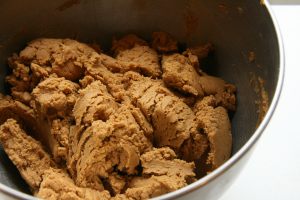 In a medium mixing bowl, thoroughly whisk together the flour through the cinnamon;  set aside.  In a large bowl, with an electric mixer on medium speed, beat together the butter, shortening, brown sugar and molasses until well blended and fluffy.  See below.  Beat in the egg and orange zest until well blended and smooth.  Beat in half of the flour mixture on low speed until evenly incorporated.  Beat or stir in the remaining flour mixture until evenly incorporated. Don’t overmix.  Let the dough stand for 5 minutes or until slightly firmed up.