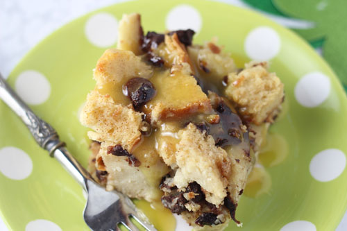 This luscious, slightly chewy, thick and creamy bread pudding is taken to the next level of goodness or badness…depending on how you look at it. It has Whiskey, and drunken raisins AND CHOCOLATE. It is even drenched in a rich, buttery whiskey sauce because more whiskey is always a good thing when it comes to Irish bread pudding. Right?