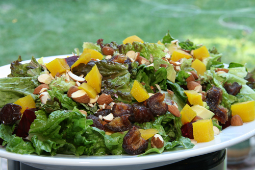 It’s gorgeous isn’t it? Sorry, I usually am not so disgustingly transparent with my bragging rights, but this salad deserves to be on the cover of any magazine. And to think, this is just the second string version of my original salad I made for my book club last Friday night. That one was the real stunner because the golden and purple beets both were in abundance on the original version.